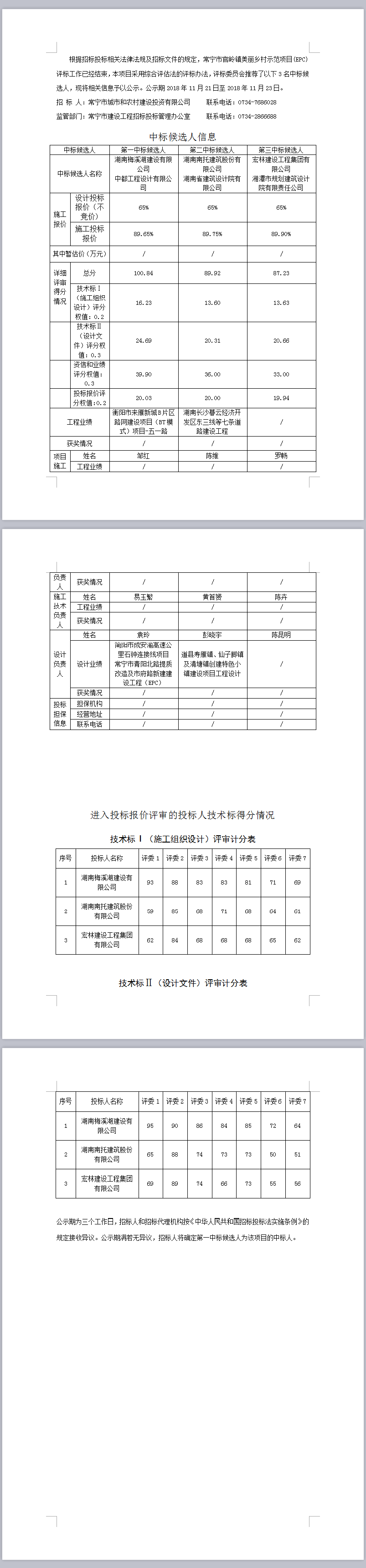 常宁市官岭镇美丽乡村示范项目(EPC)中标候选人 (更正公示)