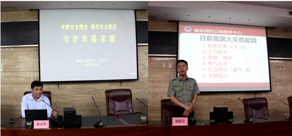 为牢固树立安全发展理念,进一步推进落实安全生产主体责任,切实保障公司安全生产形势持续稳定,为新中国成立70周年营造稳定的安全生产环境,按照湘投集团统一部署, 6月14日,公司一起参加了由省咨询公司组织开展的以“防风险、除隐患、遏事故”为主题的“安全生产月”活动,此次活动由省咨询公司纪委书记朱燕主持,湖南省应急管理厅宋立冬处长和长沙市普消消防刘南方教官受邀讲课。